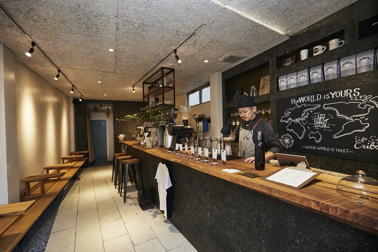 「もともとの内装はガレージっぽい雰囲気のカフェだったんですが、年々ホールセールの需要も増えてきたため、僕自身ステップアップを図る意味で、サービスをイチから見直し、ミニマルな空間にリニューアルも行いました」