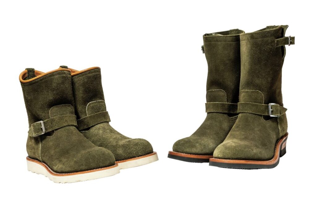 キーストーンの代表作であるバイカーブーツとペコジニアブーツに、新色がラインナップされた。どちらもスウェードで、アメリカのホーウィン社にカラーリングを別注。特にガルシアグリーンと名付けられた深みのあるグリーンは絶品であった。各6万3800円