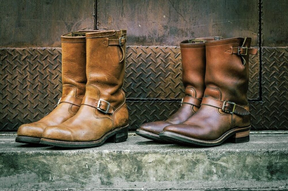 左は元ネタとなった’70年代のナスティフィートのバイカーブーツ。雑誌イージーライダースで通販されていた知る人ぞ知る名作。当時の空気感を再現しつつも、奥山さんの徹底した作り込みで再構築した。