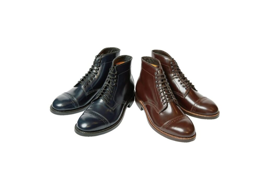 東京をベースにし、木型から作り込んだメイドインジャパンの良質なプロダクトを展開する人気ブランド。このキャップトゥブーツは、ハミングバーズヒルショップがホーウィン社のクロムエクセルレザーで別注したもの。ネイビーとブラウンに加えて、ブラックも展開。5万5000円
