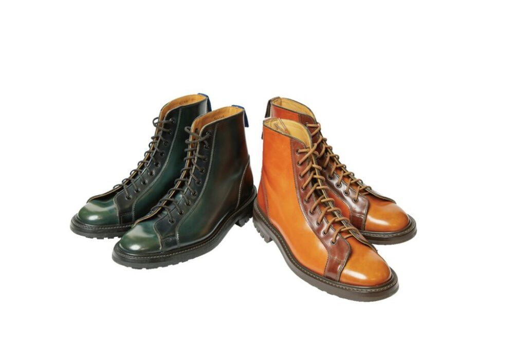 英国紳士靴を代表する名門ブランドのひとつであるトリッカーズへの別注。通なモンキーブーツをベースに、なんとコードバンで別注を掛けているのがポイント。ソールにはコマンドソールをチョイスし、紺は2色、茶は5色を使用。12万8700円