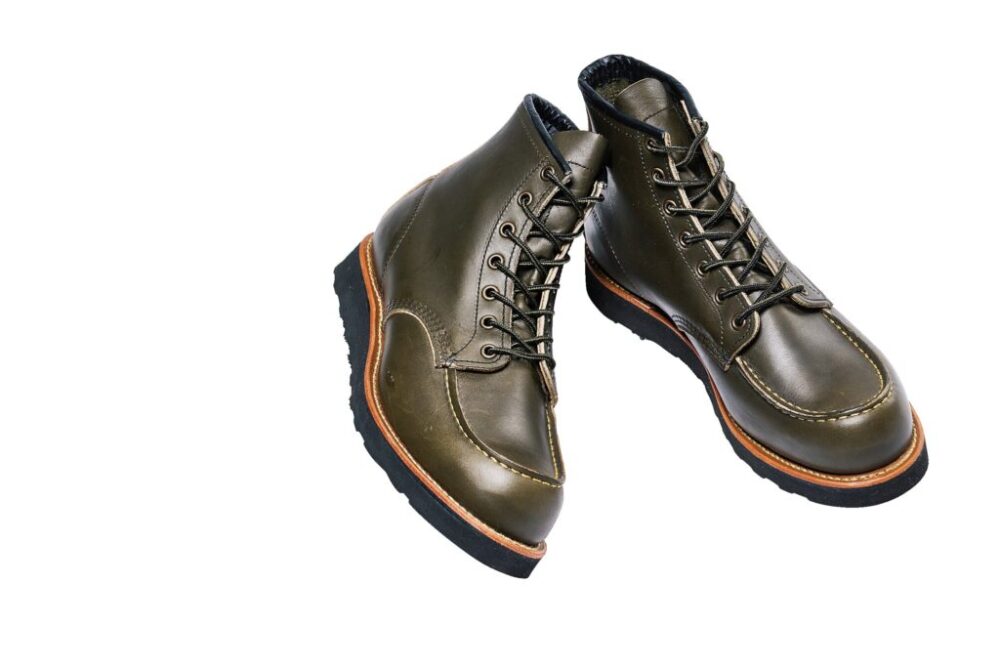 レッドウィング社が白く底が平らでクッション性に富むトラクショントレッド・ソールを初めてブーツに導入した8インチ丈の#877を発売したのが1952年。その数年後に6インチ丈の#875も登場、以来、現在でもレッドウィングを代表するブーツとして人気の高いモデルを、アースカラーで落ち着いた深みのあるグリーンのアルパイン・ポーテージレザーで仕上げた#8828。クラシックモックにブラックのソールがスタイリッシュな印象に。4万5870円