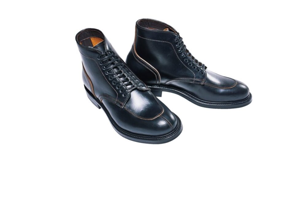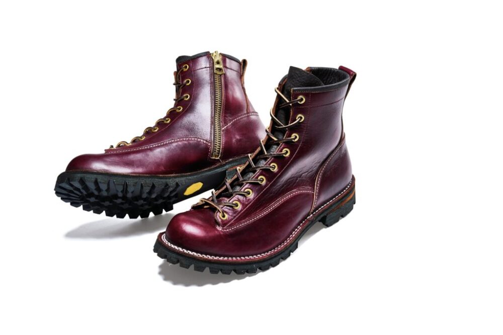 2010年にブランド設立、2014年からは木型から作成し、完全国内生産に移行したブランド。アメリカのホーウィン社のクロムエクセルを使用しグッドイヤーウェルト製法で作られた、約5インチの高さのある乗せモカタイプの編み上げブーツ。ハイトが短めで、アイレット上部はフックの仕様になっているので、程よいホールド感と長いブーツに比べると着脱も容易なのが特徴。ワークブーツとはまた違ったカジュアルな雰囲気が楽しめる。6万500円
