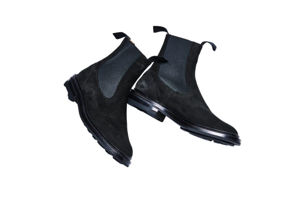 革の銀面を起毛させた毛足の短いヌバックは、ベルベットのような滑らかな質感で上品な雰囲気。そんなヌバックを、なめしの段階で特殊な撥水処理を施すことで柔らかさを損なうことなく高い耐水性を実現させたハイドロヌバックを使用した別注モデル。やや細身のシルエットとボリュームを抑えたトゥシェイプの木型を使用することで、ストームウェルトを備えるなどヘビーデューティな作りでありながら、ドレスライクな佇まいを持つ。13万2000円