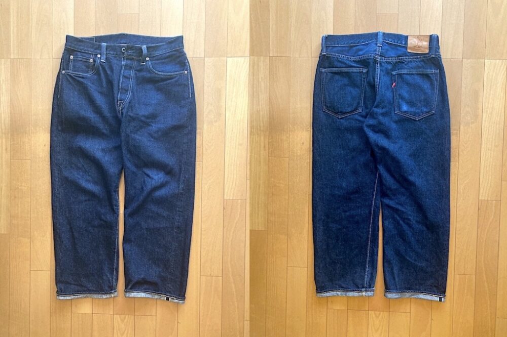 通常のインディゴ染めの生地と、本藍染めデニムの2種類の生地を使っている(さらにポケットスレーキにはライトオンスのデニムを使用)ので、それぞれの色落ちもレポートしていきたいところ。