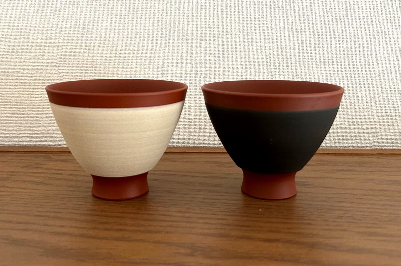 赤褐色の無名異土をベースにホワイトとブラックに仕上げたご飯茶碗(4180円)。シンプルでモダンなデザインがお気に入り。