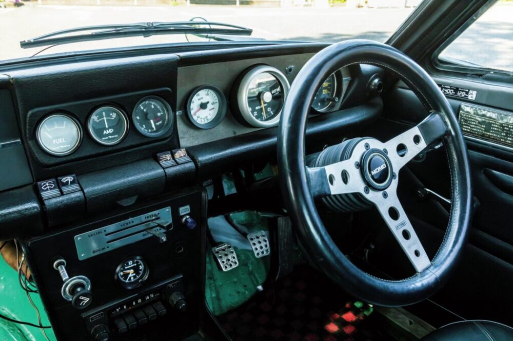 取材車両は1.8リッターのSOHCエンジンを搭載する`72年式モデル。これに117クーペに搭載される2リッターDOHCのG200W型エンジンに、ソレックスキャブレターを二連装したユニットに換装したカスタム車両となる。