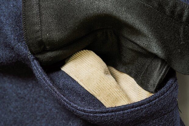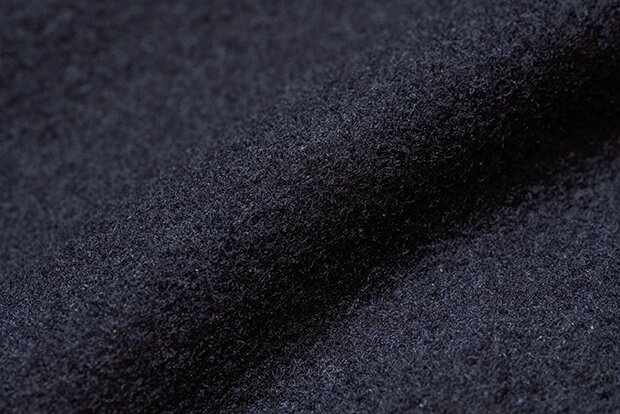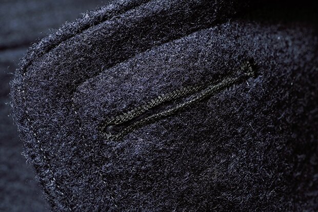 海上で風を通さないほど目の詰まったウールメルトンの質感や黒さのある色合いも再現。