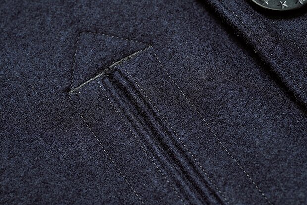 初期の米海軍のピーコートを忠実に再現させたような逸品。