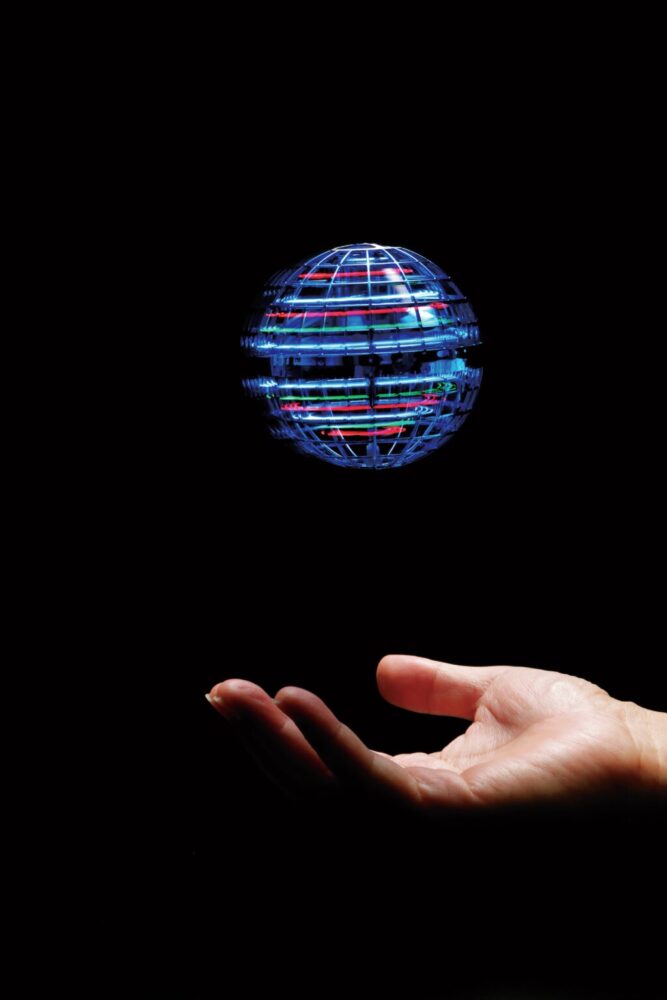 ここで紹介するフライングボールもいわばドローンの一種。といっても、普段目にするドローンとはちょっと形が異なっている。そして、最大の特徴が機体を操作するコントローラーが存在しないこと。機体を上空へ放るとホバリングを開始。ボールを投げる角度でブーメランのように元の場所へ戻ってくるなど、コツをつかめば飛行経路を変えることができる。外装は柔らかくて耐久性のあるポリプロピレンを使用しているため、たとえ物にぶつかっても壊れることはない。