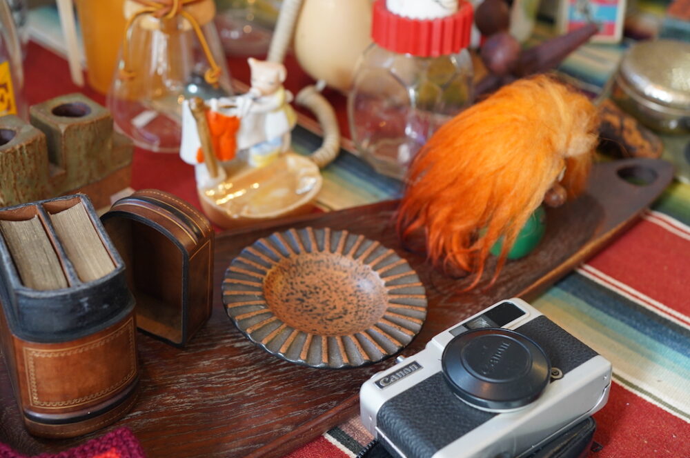 雰囲気のある古着から昔ながらのアンティーク雑貨、それにセンスの良い眼鏡やサングラスなどのアイウエアが店内を埋め尽くす。