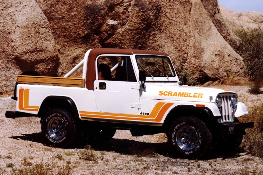ジープといえば4WDのショートボディで、急勾配や岩場ももろともしない走破性を持ったモデルというイメージが強いけれど、もともとは軍用に開発されたヘビーデューティな性格のモデル。というわけで商用にも使えるピックアップは1947年から販売されていて、山間エリアでは公的なクルマとしても使われていたほど。