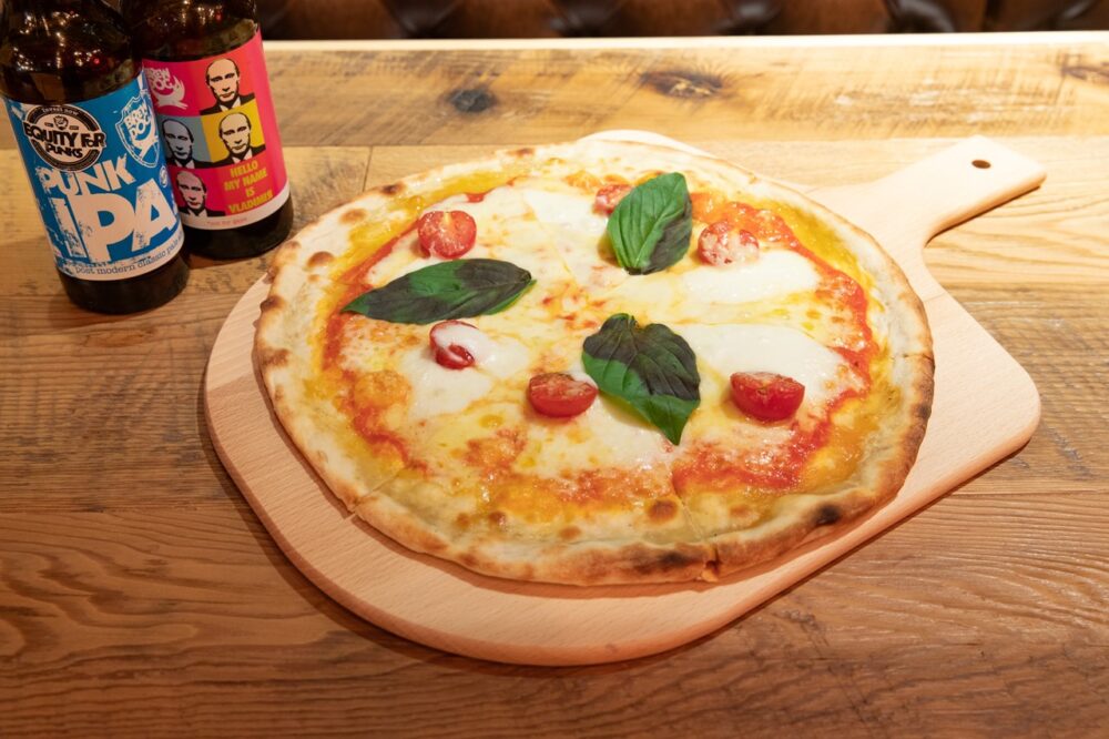 たっぷりのチーズを載せた濃厚なピザもビールとの相性抜群。