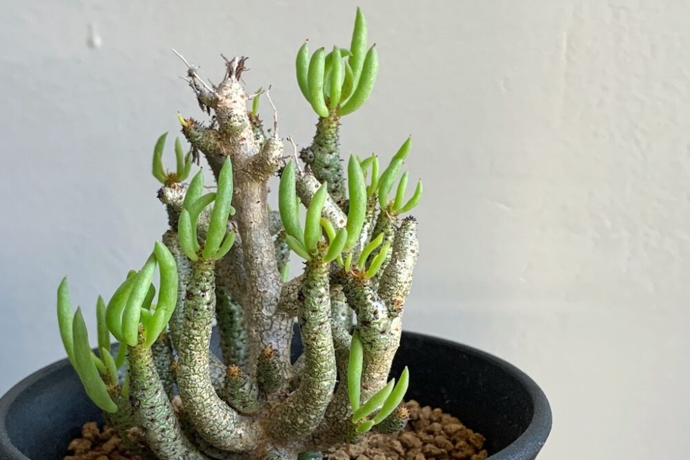 小さな実生株や挿し木の個体など流通も多く、比較的入手しやすいブックホルジアヌス。可愛らしい樹形と小さな多肉質の葉が特徴的な小型種です。