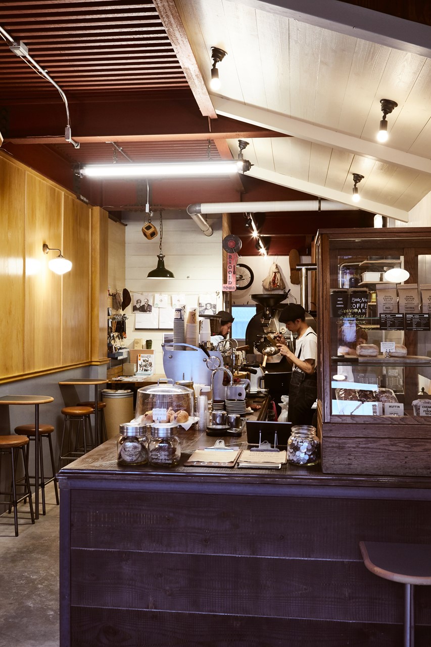 富ヶ谷交差点のすぐ先。井の頭通り沿いにあるコーヒーロースタリー。1号店の「リトルナップコーヒースタンド」からも徒歩圏内だ。外観は小さいが入店してみると思いのほか奥行きがあり、カウ
