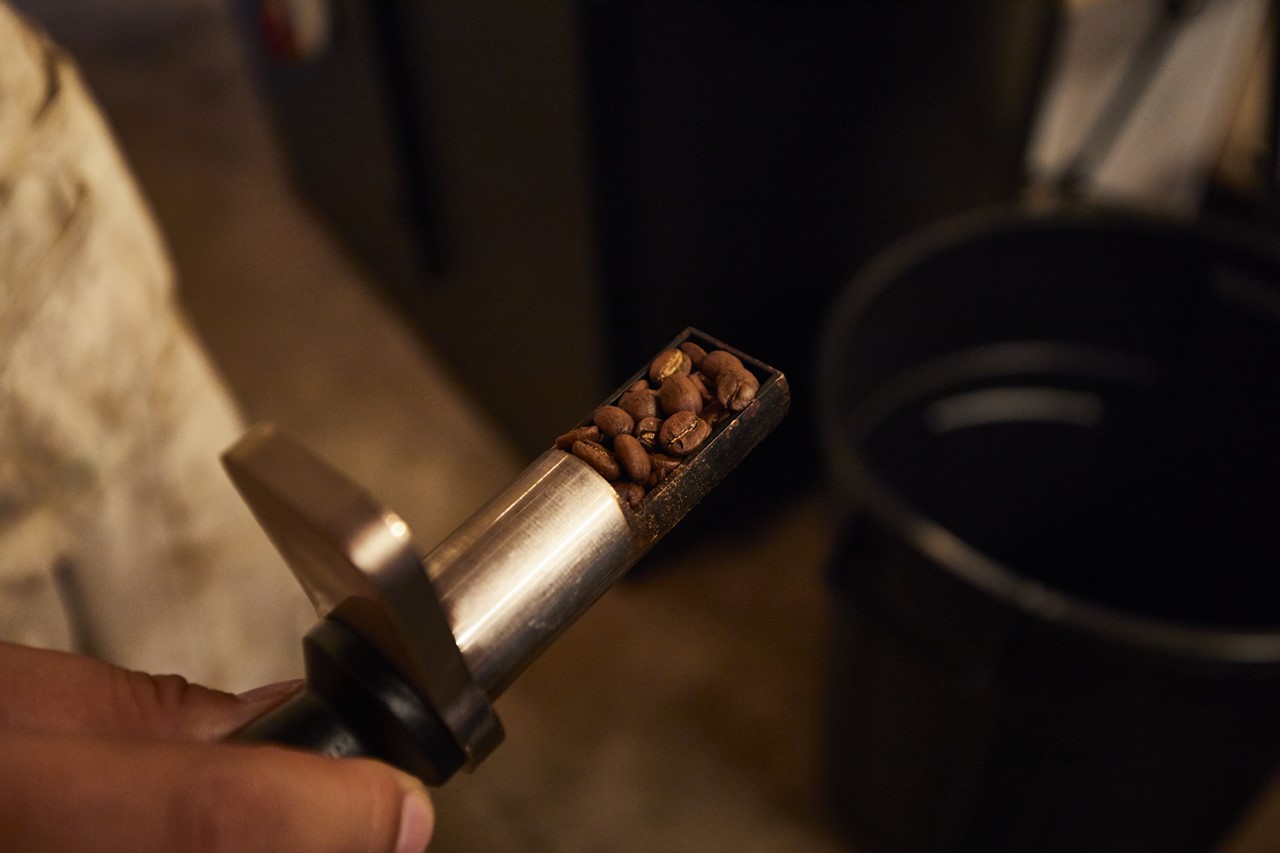 そこで豆を焼く焙煎士は代表の濱田さんだ。オーナーバリスタでもある濱田さん。当初は信頼できる焙煎士に一任していたが、焙煎の量も増え、バリスタが育ってきたこともあり、自家焙煎という次のステップへと踏み出した。驚くべくは、濱田さんの焙煎技術はすべて自分流。