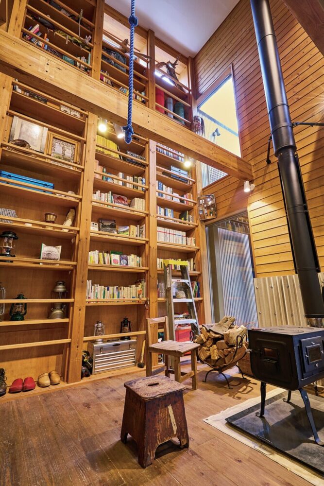BESSのモデルの中でも、最も遊び心あふれたモデルが、この「ワンダーデバイス」。ガルバリウムとウッドの織りなすデザインは、都市部にもカントリーサイドにもマッチする。吹き抜けを利用した「ハシゴde本棚」の圧倒的な存在感は、ワンダーデバイスの真骨頂。