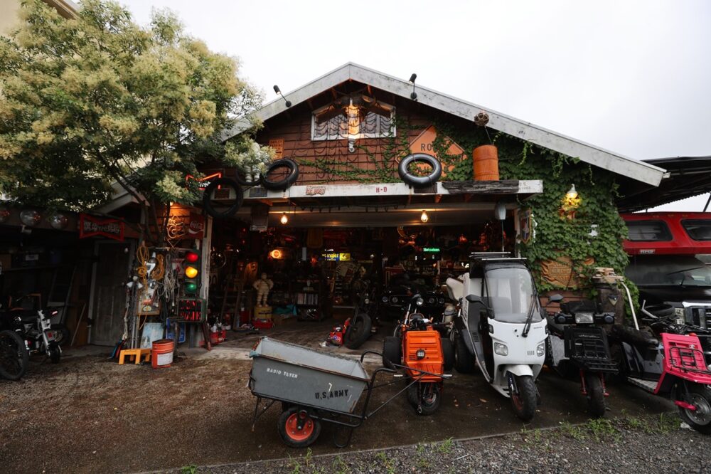 旧いモノ好きのオーナーが軽い気持ちで子供にラジオフライヤーを購入したら、すっかりハマってしまい、全部を収めるガレージを建てることに決定。収集したヴィンテージ雑貨をガレージにちりばめ、居心地のよい空間を演出。趣味の仲間が集まる秘密基地のような存在になっている。