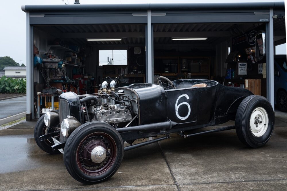 7.レースにも参加する愛車ホットロッドを自ら手を入れるピットガレージ。