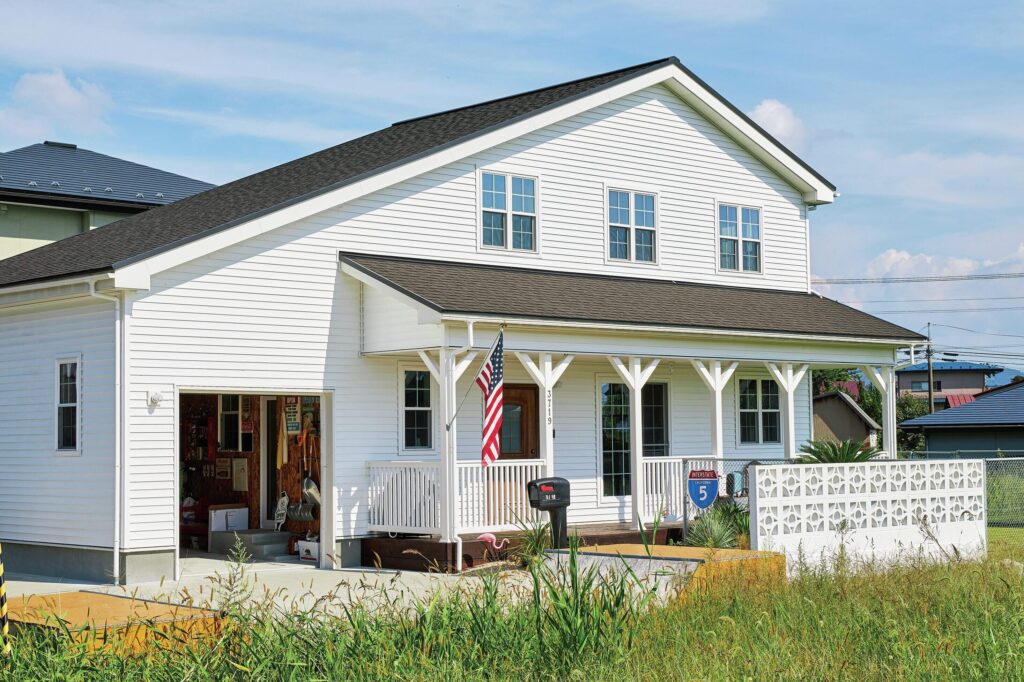 アメリカンな住宅をプロデュースするオーナーの自宅はどこから見てもアメリカの一般的な住宅に見えるが、もちろん日本で作られたメイドインジャパンの建物だ。細かなパーツやグッズなどもアメリカにこだわった作りが魅力。ガレージにはモトクロスのバイクも並び、自分の好きなことにとことん正直に向き合ったスタイルがカッコいい。