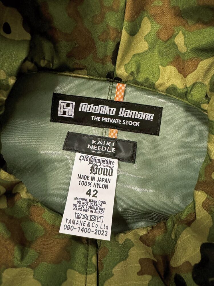 HIDEHIKO YAMANEのカモ柄ナイロンコート。