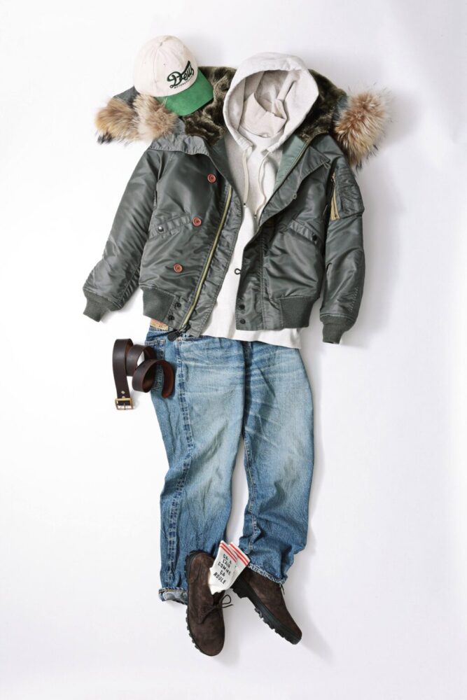 ミリタリーをベースに独自のアレンジでストリートを賑わすアヴィレックスだが、このN-2Bはヴィンテージに忠実なデザインで武骨な仕様にこだわった。まさに渾身の一着。