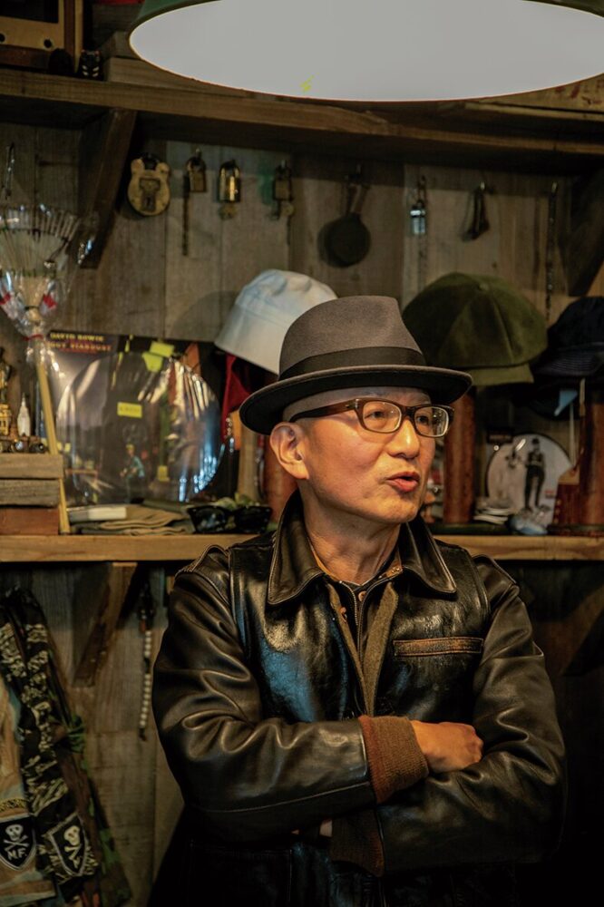 「22歳頃からA-2を着始めましたが、当時は襟は立ててなかったです。後に本物の兵隊の写真をいろいろ見るようになって、やたら兵隊が襟の後半分を立てていることに気づいたのと、その頃襟を立ててる人がいなかったので、これは僕が立てたらないかんなと。それ以来ずっと襟を立ててます」