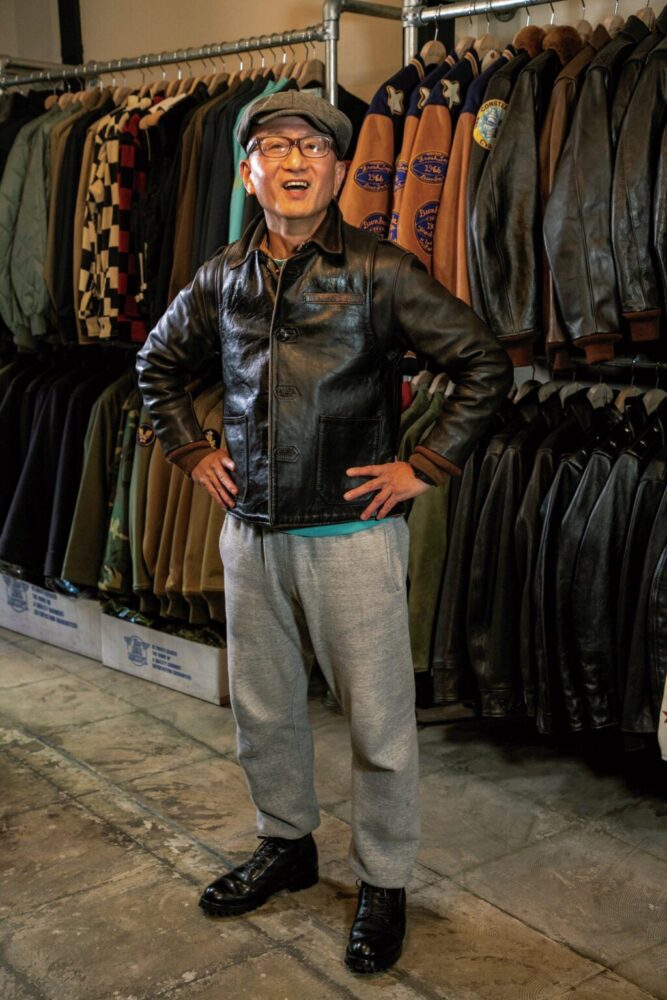 アメカジ業界ではフライトジャケットをはじめとした衣類はもちろん、無類の戦車好きとしても知られる「ザ・リアルマッコイズ奈良」の内田さん。フライトジャケットのなかでも特に「A-2」が好きという内田さんの最近のお気に入りがA-2に「スウェットパンツ」を合わせるというもの。