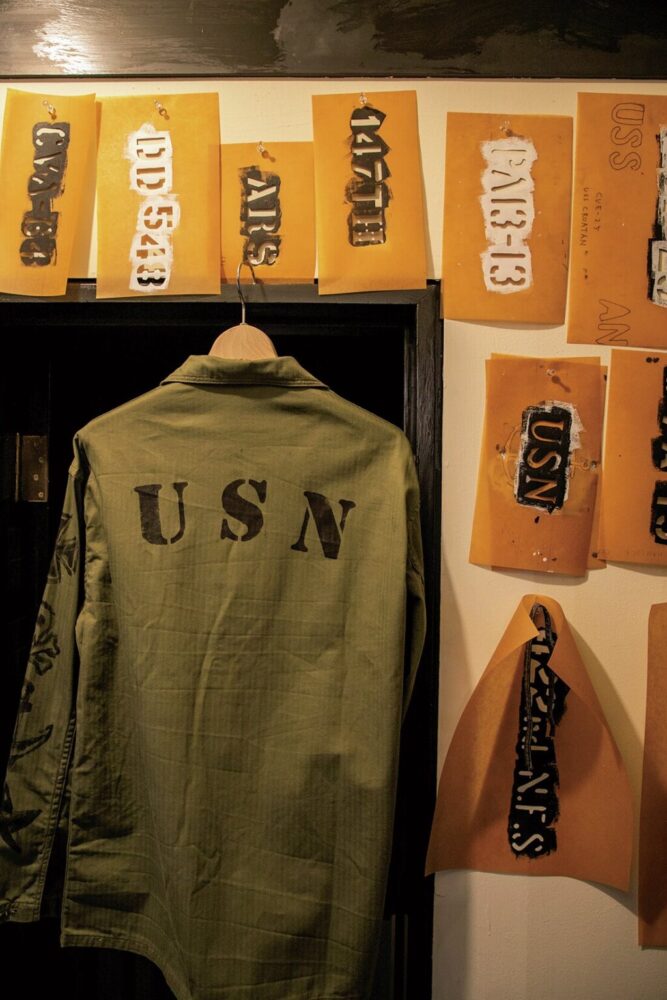 「兵隊は与えられた装備の中でイキろうとするからバックペイントも生まれるし、襟のフックにホイッスルやベルをつけたりする。だから僕もネームプレートやワッペンを付けたり、ボタンを変えたり、ステンシルでペイントしたりしてます」