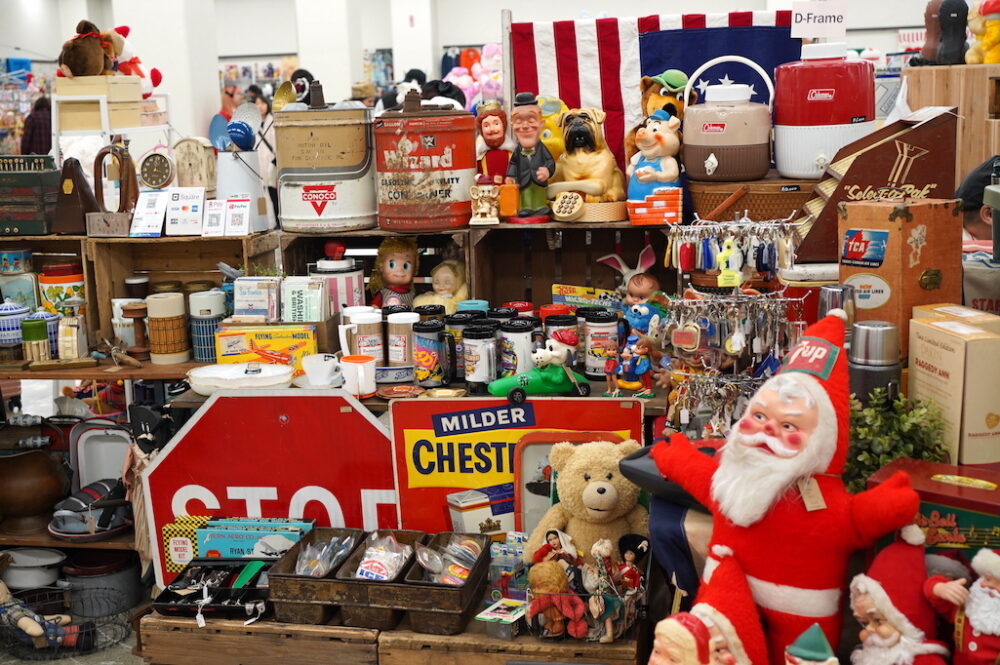 販促用に使われていたいわゆるアドバタイジンググッズだったり、かつてアメリカで普通に使われていた日用品まで、アンティークの世界は多種多様。もちろん古着もあれば、世の中に販売されなかったレアモノが巡り巡って売り物になっていたりと神出鬼没。