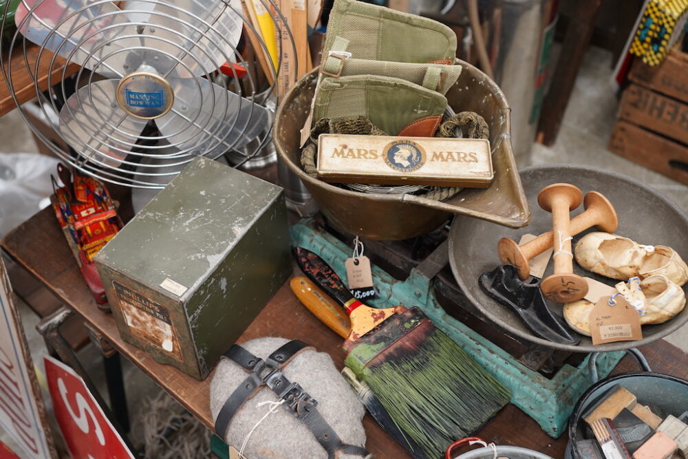 多くのアンティークディーラーが「こんなのあるよ」と持ち寄った会場内は、オールドアメリカンカルチャーから和骨董、それにヨーロッパの蚤の市を感じる空間に。