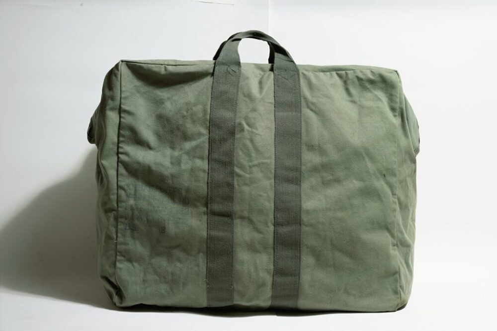 希少価値の高いコットン製フライヤーズキットバッグ。米空軍のパイロットが装備品を収納するために使用していた。9800円〜