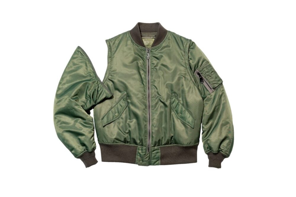 名作MA-1の袖を着脱できる仕様にアレンジすることで、ベストとしても着用できる2ウェイに仕上げた。ビッグシルエットにすることで、ミリタリーの無骨さを中和させている。1万3630円(フリークス ストア渋谷 TEL03-6415-7728)