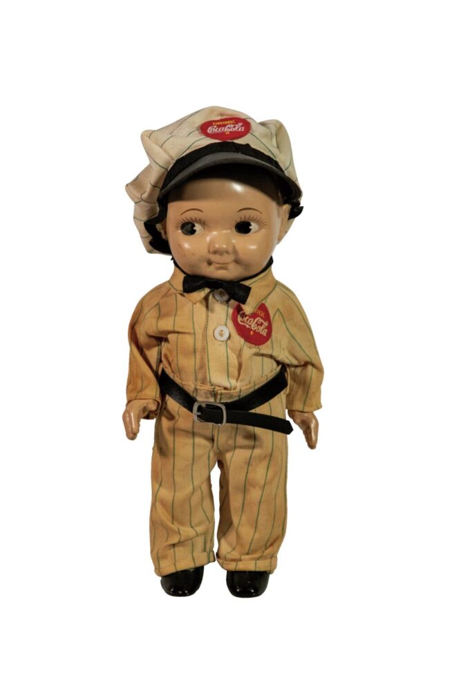 1960年代のプラスチック製。オーバーオール、シャツ、ハット全てがヒッコリー柄。首に巻かれたバンダナも残る美品。25万円