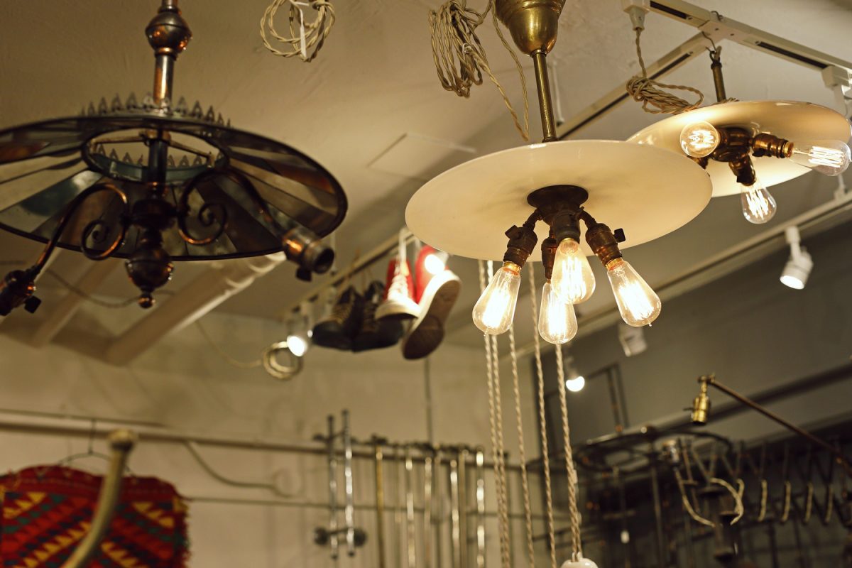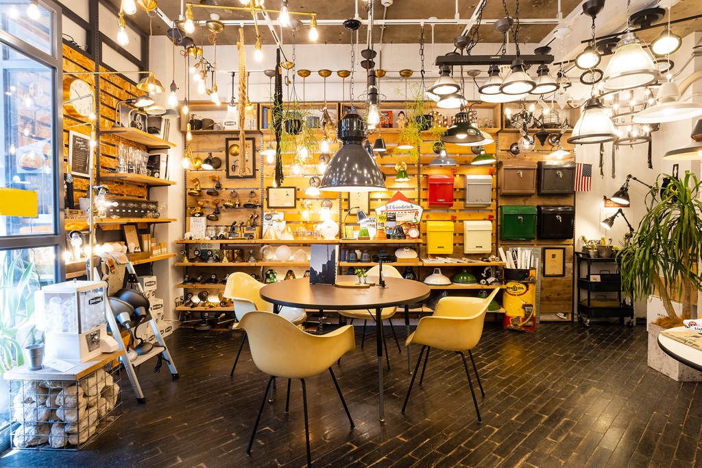 「フックド」は、2017年に中目黒の名店「ジャンティーク」でバイヤーを務めていた安藤夫妻がオープンさせた人気ヴィンテージショップ。インダストリアルファニチャーは基本的には業務用に作られているため耐久性に優れており、シンプルな作りで合わせやすい。気兼ねなく使えるのも魅力だ。同店ではランプに関しては、日本の電圧でも実際に使えるようにすべてメインテンスしてから店頭に並べているので、安心して使うことができる。