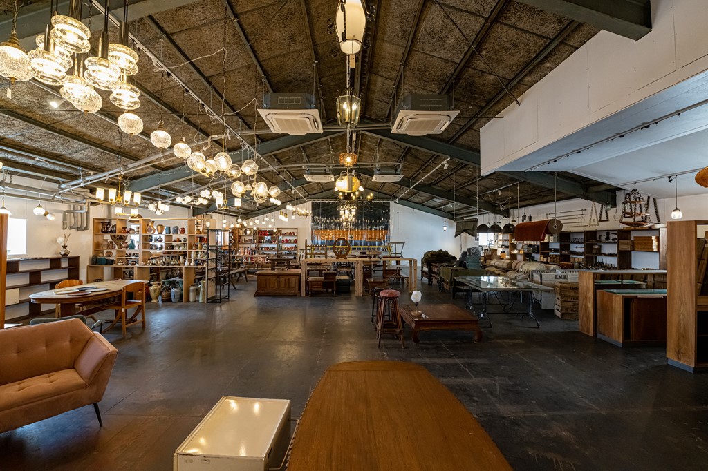 すでにヴィンテージ版ホームセンターとして名の知れたセカイクラス/シャークアタック。以前の羽田店も300坪と十分な広さがだったが、移転リニューアルした大和店はなんと400坪。1階は大型家具がメイン、2階はサイドテーブルやコーヒーテーブルといったホームユースの方などに向けたエリア。最近は西ヨーロッパのアイテムがメインなのですが、今後はインドやモロッコといったエリアからの買い付けも強化していき、アメリカはもちろん世界中のヴィンテージが揃うショップに進化させていきたいと考えているという。