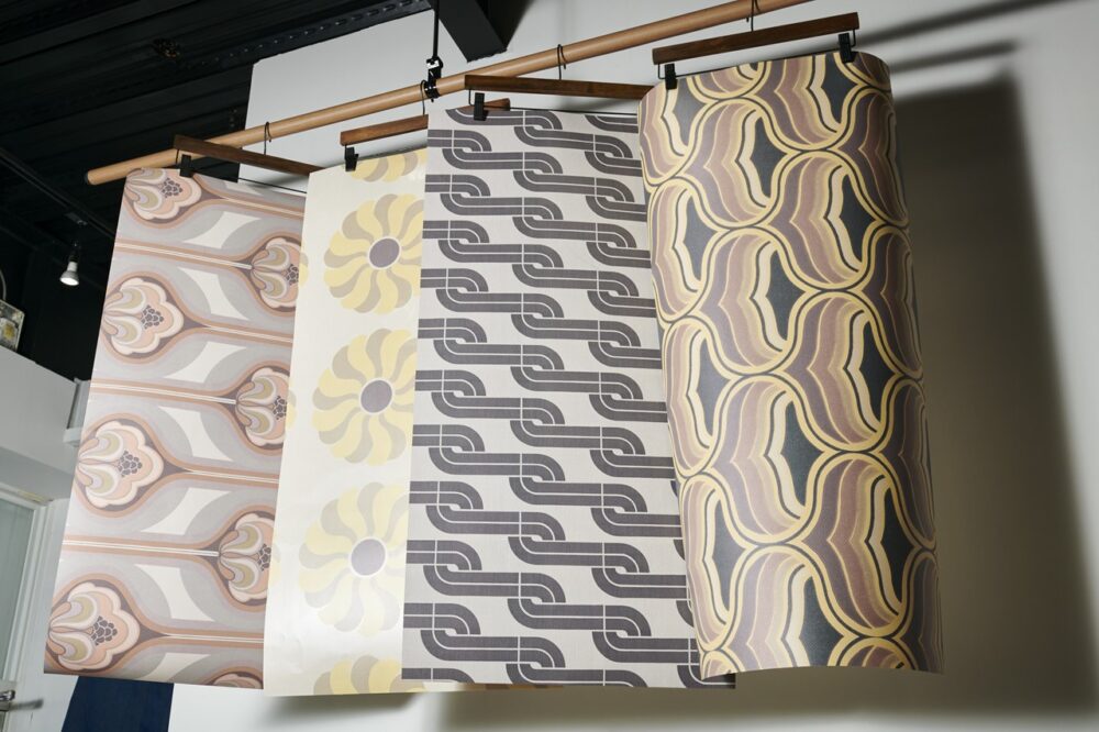 部屋の雰囲気は床と壁紙で決まるという定説があるほど、インテリアにおいて重要。アメリカでもかつて壁紙の文化もあった。そんな旧きよき時代の壁紙ブランド『ユナイテッドウォールペーパー』に目を付けたのが、ラングラーコレクターであり、内装業を本業とするゴールドゲートの金丸さんだ。国の重要文化財をデジタルデータ化する際に使われている世界最高水準の超高精細なスキャナーを用いて、当時の壁紙をデータ化し、それをインクジェットプリンターで出力。ただリプロダクトするのではなく、ベースの壁紙に抗菌作用のある機能的なものを使ってみたり、日本の風土に合わせてカラーリングを変えたりするなど、今のテクノロジーと融合させ、アップデートしている。