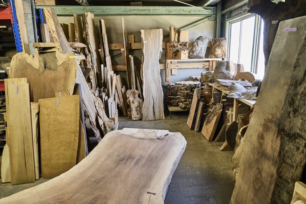 「ティープラスター」は数百種類の木をストックしていて、ここまでの種類が揃うところはそうはない。木材の販売を行うほか、オリジナル家具の製作やリノベーション、設計・施工まで幅広く行うが、ファクトリー兼ショールームにあるレアな木材を求めて、材木のプロたちも買いに来るほど。またティープラスターでは、オーダー家具の製作も受け付けている。ファクトリー内では、専門の職人たちが日夜木材と格闘しているのだ。