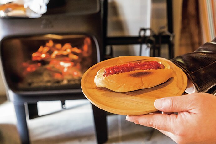 今回は、薪ストーブを使ってホットドッグを作ってみた。ビールを飲みつつ、火を見つめながらソーセージを焼く。少しずつ、パンに焦げ目がついていく。レンジやオーブンでは体験できない、濃密な時間が流れてゆく。断言する。薪ストーブがあるだけで、あなたの人生は、今よりも少しだけ豊かになるはずだ。