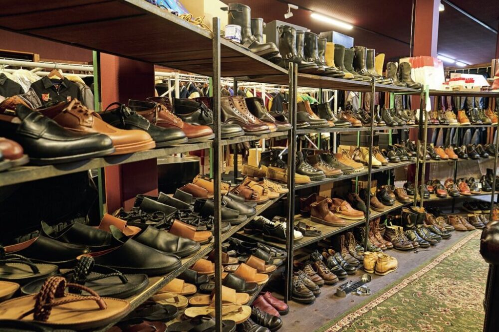 ブーツや革靴のラインナップも豊富。メーカーズやローリングダブトリオはじめ、人気ブランドのブーツが目白押し。レッドウィングの取り扱いもあるので、ワークブーツ好きにはたまらない空間だ。