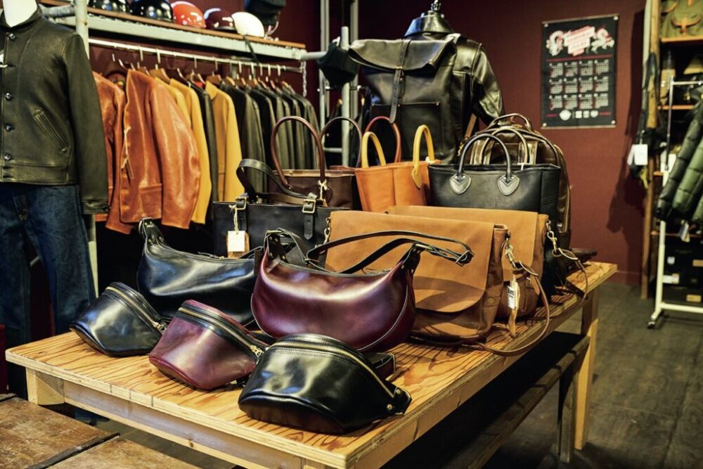 vascoやインセプションなど、レザーバッグも豊富に取り扱う。特にvascoとBSのコラボアイテムは人気が高く、入荷するとすぐ売り切れてしまうとか。vasco×BSのヘルメットバッグは人気商品。
