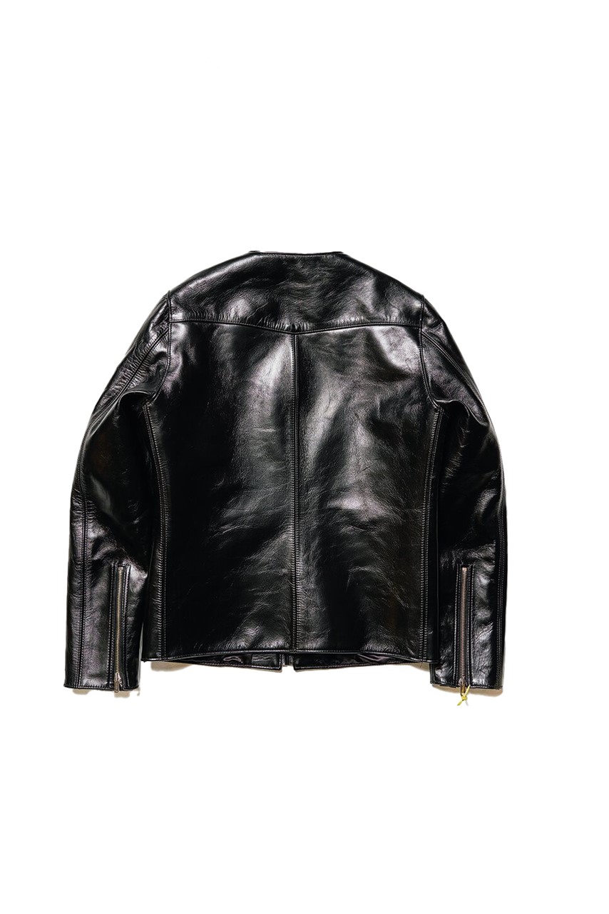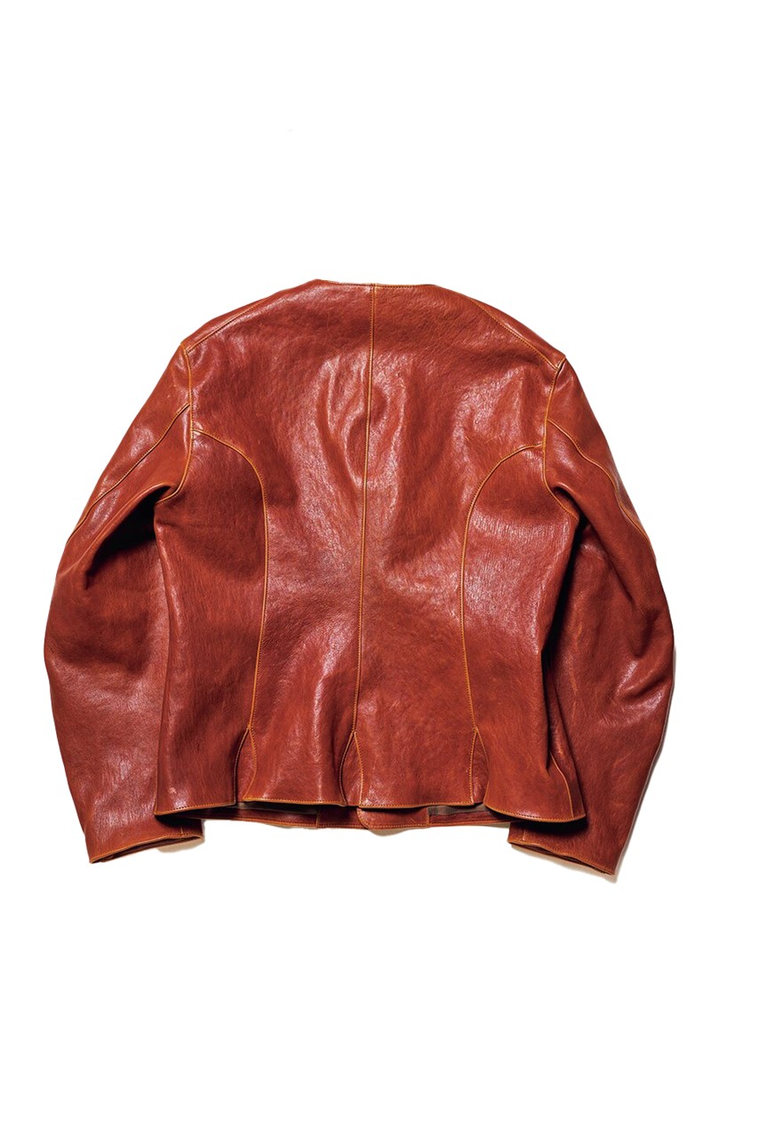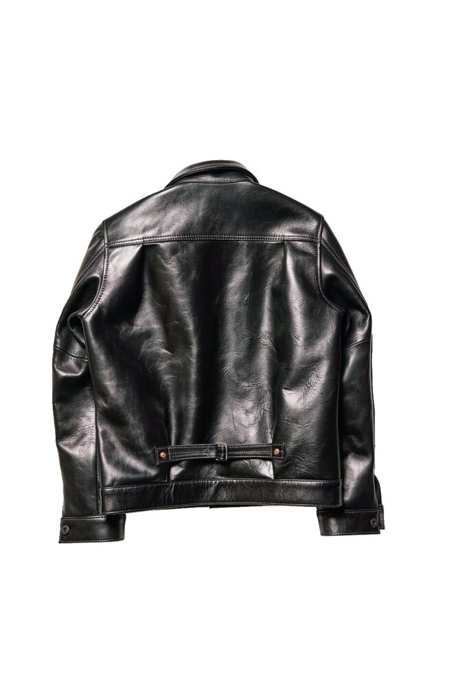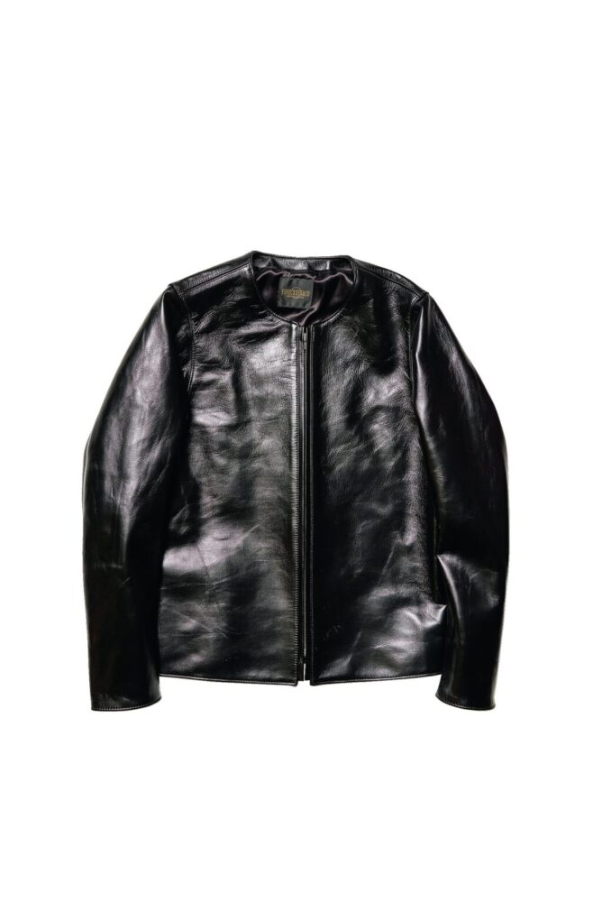 レーシングスーツをぶった斬ったような、襟もポケットも省略されたシンプルなデザイン。アウターとしてはもちろん、冬のインナーとしても活躍してくれる。1.3mm厚の渋鞣し・ピグメント仕上げの馬革を使用。15万9940円