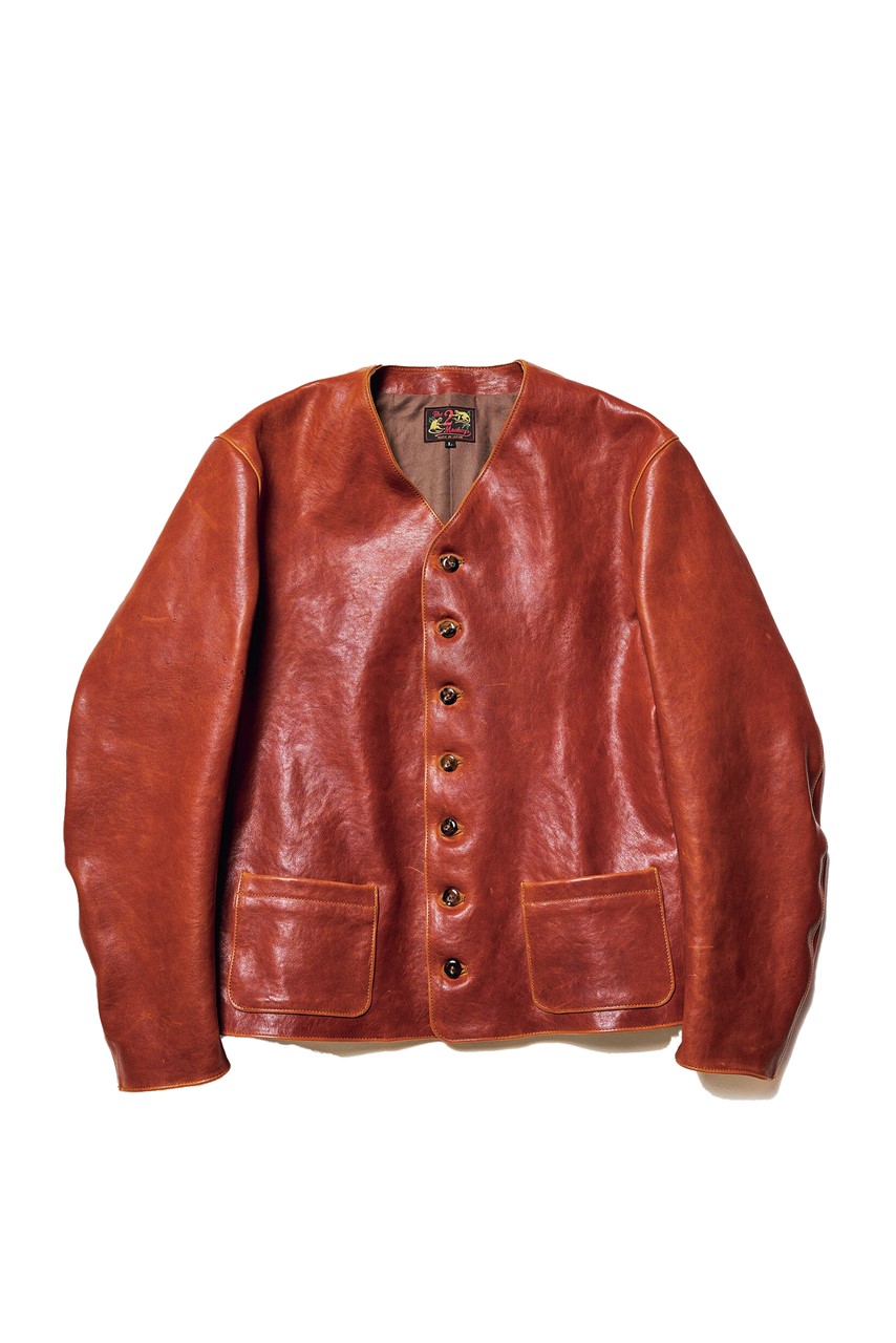18世紀にネイティブアメリカンとの毛皮交易のために未開の地だった北米内陸部を旅していたフランス人たちが着用していたジャケットをイメージして製作。素材は1.8mm厚の渋鞣しの馬革を採用している。22万円