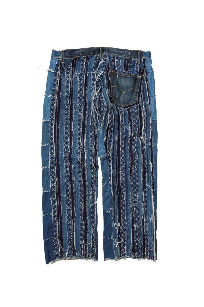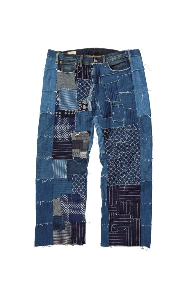 まるで日本古来の襤褸のようなパッチワークカスタムが施された圧倒的なカスタマイズは、ともにスタッフの私物。もちろん同じカスタムがオーダー可能。太めにモディファイしたシルエットも見所である。