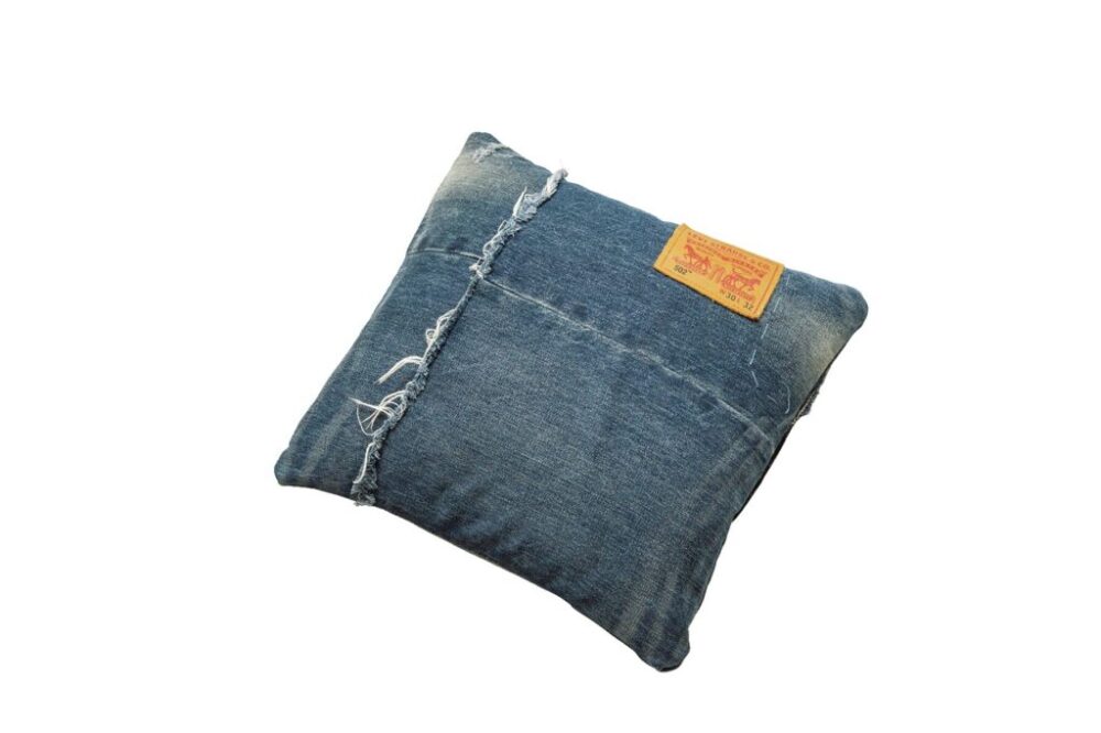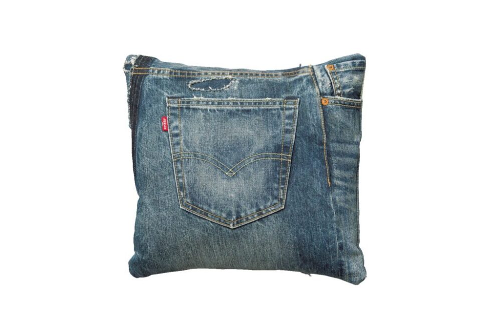 リペアやカスタムだけでなく、穿けなくなったジーンズをアップサイクルすることも可能である。これはクッションカバーにカスタムしており、アーキュエイトステッチのポケットが◎。4400円〜