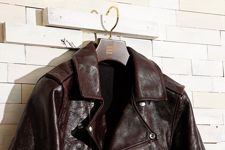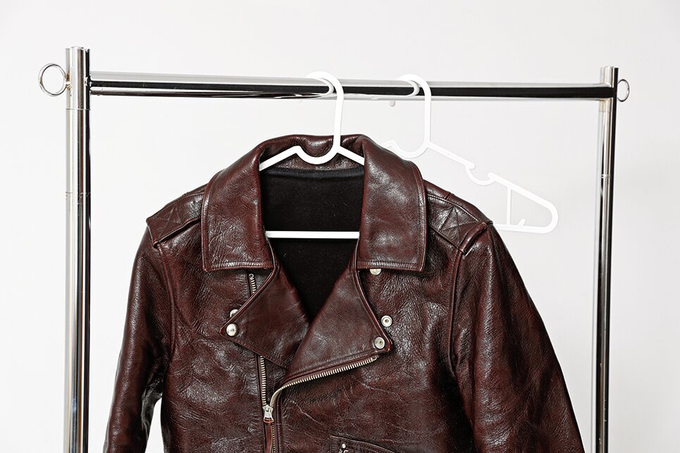 革ジャンのメンテというと、とかくオイルやクリーナー、ブラシに目が行きがちだが、同様に大切なのがハンガー。春から夏にかけて、ずっとハンガーに掛けておくのなら、せめていいハンガーを使いたい。俺が愛用しているのはナカタハンガー。ハンガーを選ぶ際、重要なのは「肩の厚み」。これが薄かったりすると、革ジャンの肩に変な癖がついてしまい、型崩れを起こしてしまう。20万円近くの革ジャンを大切に扱うなら、それ相応のハンガーを使おうぜ。