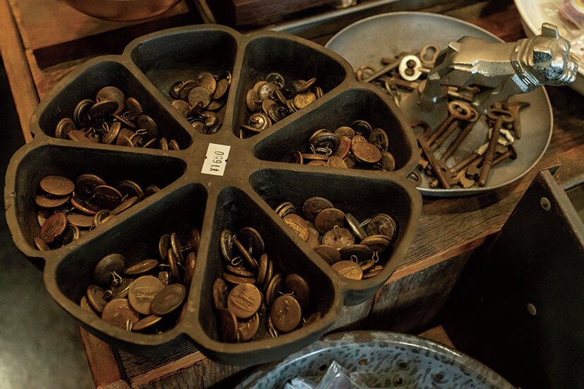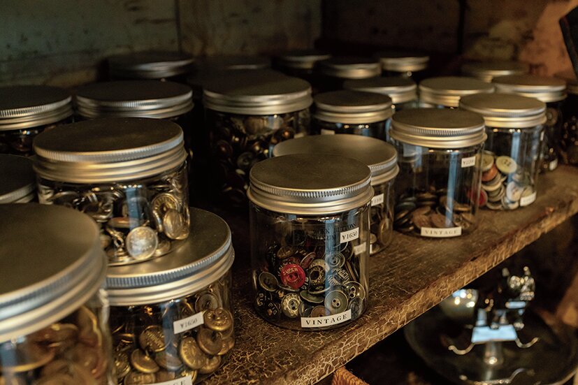 ディレクターの小菅さんがヴィンテージを徹底的に研究し、再構築したオリジナルからヴィンテージのボタンまで、様々な素材やサイズが揃っている。またジッパー類などもあり、まるで宝探しのようだ。またボタンは別料金で取り付けまで行ってくれるので、そこも嬉しい限りだ。