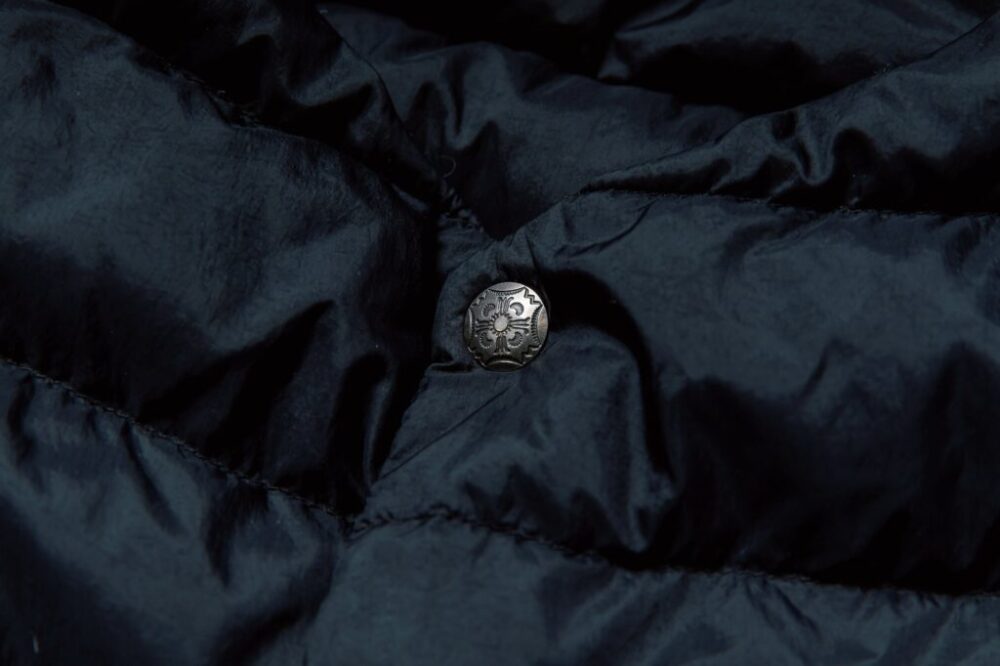 ボタンワークスで人気のカスタムのひとつが、インナーダウンなどのスナップボタンをコンチョボタンに変更すること。この手のダウンベストだと同色のシンプルなものが付くので、コンチョボタンに替えるだけで一気にアメカジとの親和性が上がる。407円〜