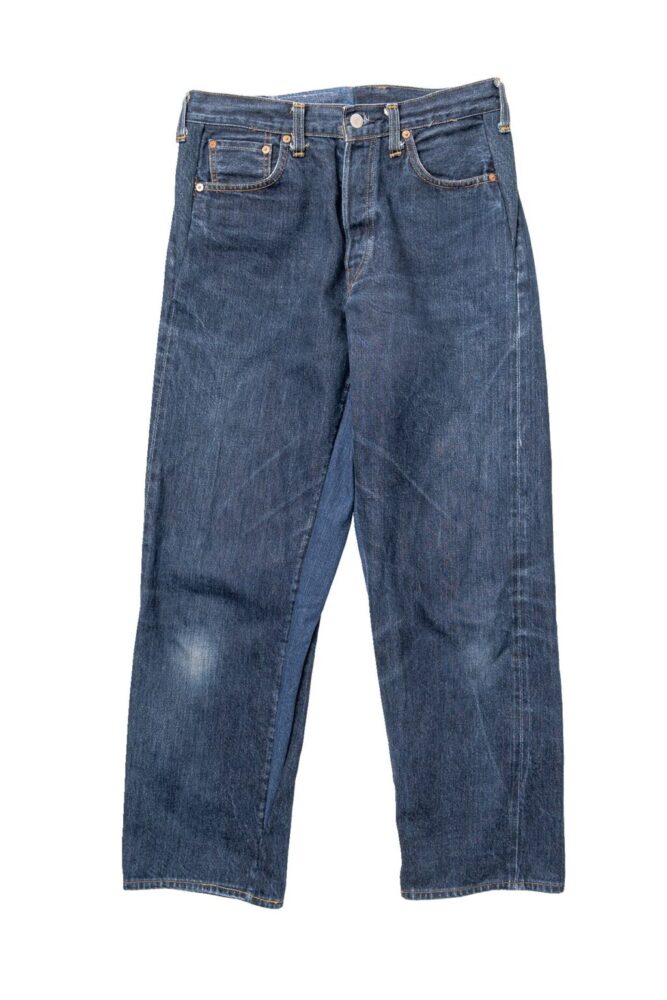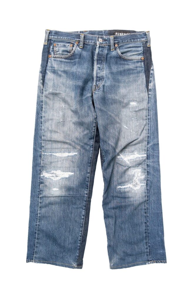 近年、プライスが上がっている’90年代のバレンシア工場の501XXをリメイク。あえて前後で異なる個体をドッキングして、ウエストやシルエットをワイドに再構築した小林さんならではのアイディアが光る1本。膝部分にもダメージ加工をしており、てんこ盛りの内容。