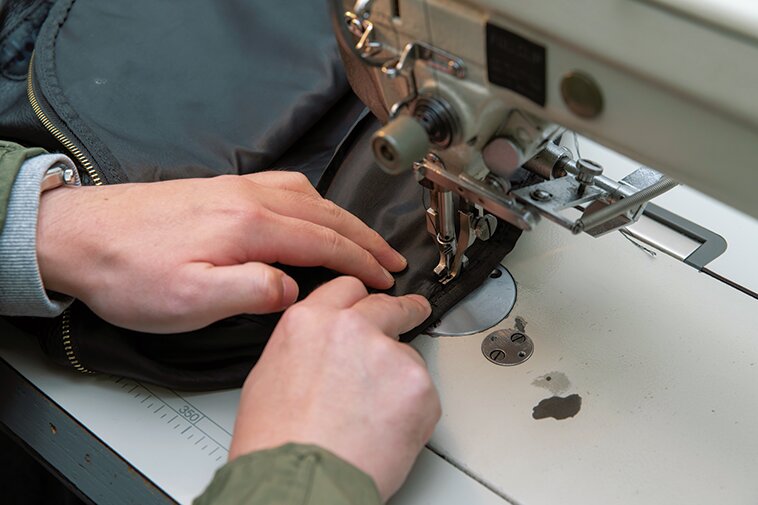 フルクリップは、数々の有名ブランドのバッグのOEMを手掛けるメーカーを母体に持つ実力派ブランド。そのノウハウを活かして、自社製品以外のバッグでもリペアやカスタムを行ってくれる。平垣さんと髙野さんは、ともにデザインを手掛けながらも、設計から生地の裁断、縫製まですべての工程を行えるクラフトマンでもある。実際にリペアを依頼したが、その原因から解析し、本来の仕様よりもタフな仕様にリファインしてくれた。リペアやカスタムを受けてくれる理由は、ブランドの根底にある理念があるからだ。